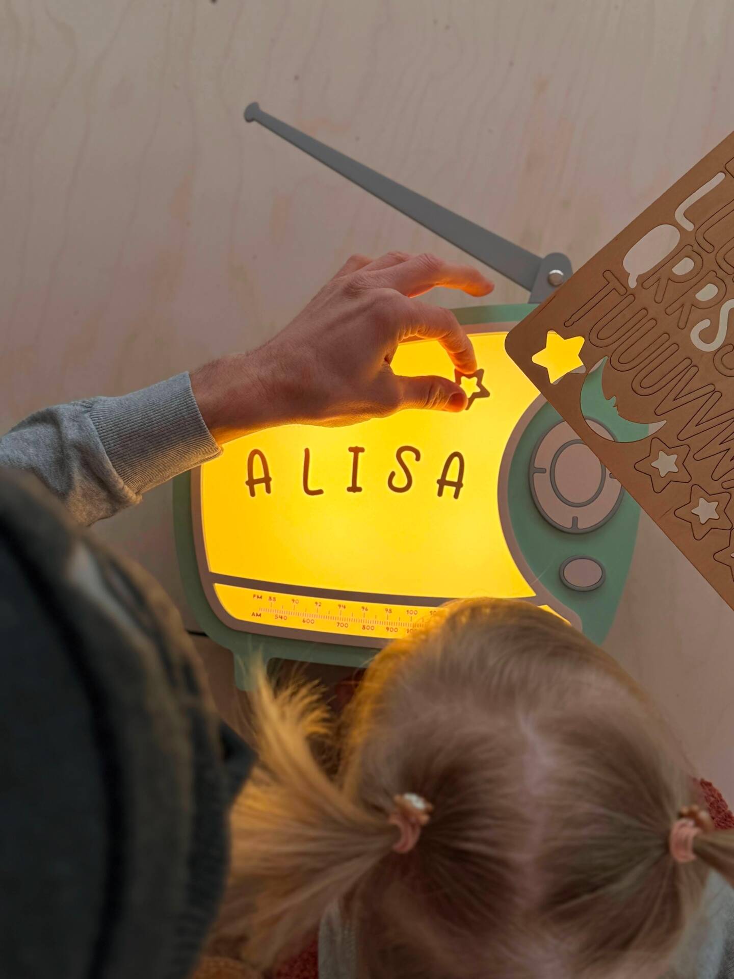 Fiecare lampă vine cu un set de personalizare — nume și forme — pentru că fiecare copil merită un obiect cu adevărat al său.