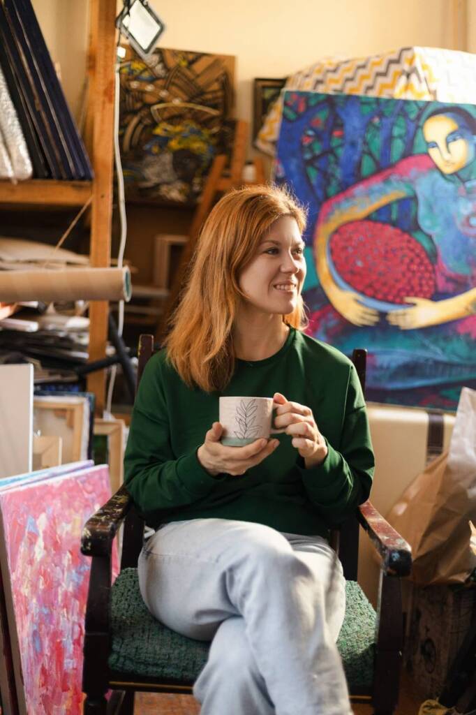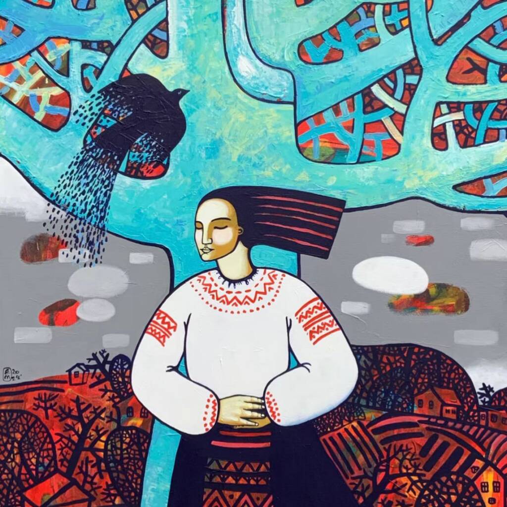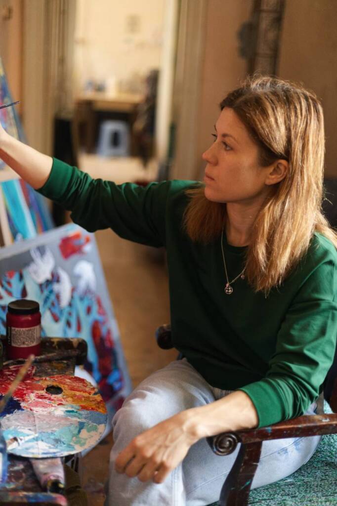 „Am început să pictez mai simbolic după ce a venit pe lume copilul meu. Atunci am simțit mai clar legătura dintre lumea fizică și cea interioară”, spune artista.
